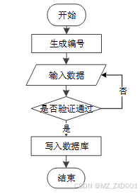 用户成功登入系统后就能够实现增加数据的操作,增加数据的编号由系统生成,用户不能随意填写,除了编号以外,其他增加信息用户自己填写,填写后的信息经过系统验证,验证通过后即可完成数据新增,数据新增的流程图如下图2-1所示。