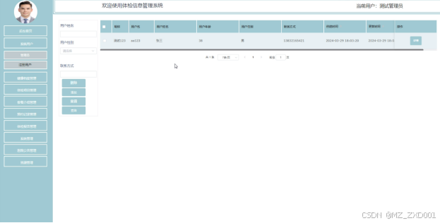 基于H5的体检信息管理系统中的管理人员是可以对注册的普通用户进行管理的,也可以对管理员进行管控。界面如下图4-7所示。