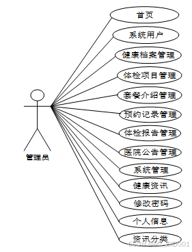 管理员是维护整个基于H5的体检信息管理系统中所有数据信息的。管理员角色用例如图2-5所示。