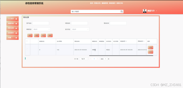 | 预期结果 | 页面显示包含有搜索关键字的预约记录 |
