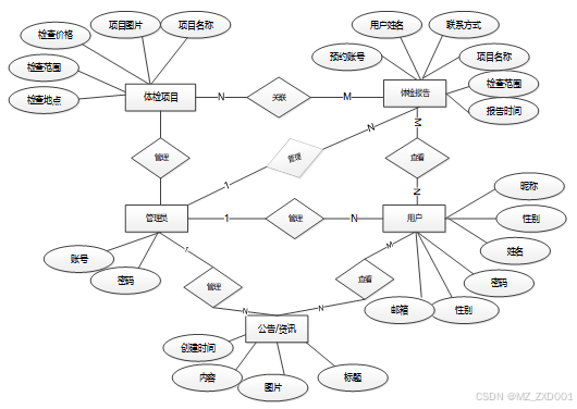 下面是整个基于H5的体检信息管理系统中主要的数据库表总E-R实体关系图。