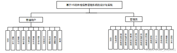 按照基于H5的体检信息管理系统的角色,划分为了用户模块和管理员模块这两大部分。