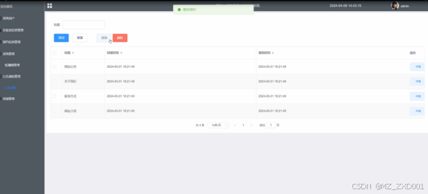 新闻资讯:管理员可以管理系统中发布的新闻资讯内容,包括添加、删除、编辑资讯内容等操作。