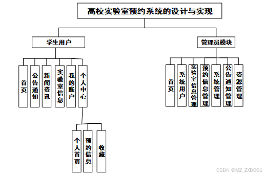 高校实验室预约系统是中需要存储不少预约信息,其模块功能结构,具体的结构图如下: