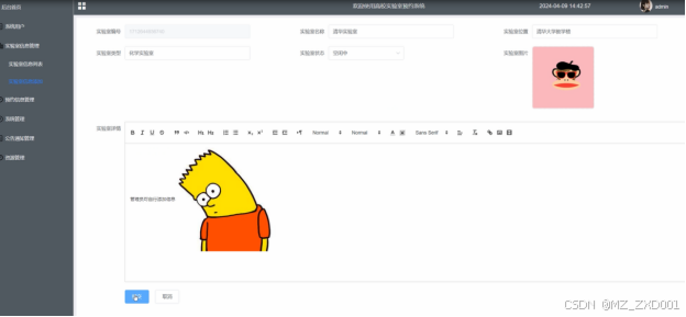 管理员添加实验室信息界面测试: