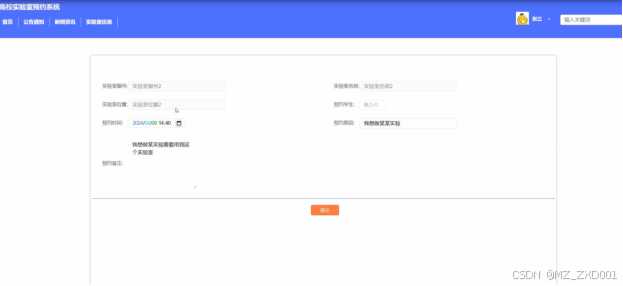 This system aims to provide students with a convenient and efficient way to book laboratory resources, and to provide a convenient management platform for laboratory administrators, thereby optimizing the use and management process of laboratory resources.