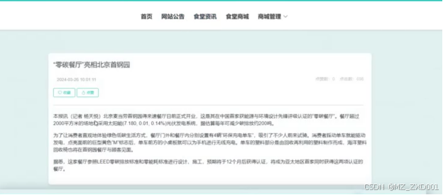 - 食堂资讯:用户可以查看系统上的所有餐谱信息,对某一餐普信息进行点赞、收藏等操作。