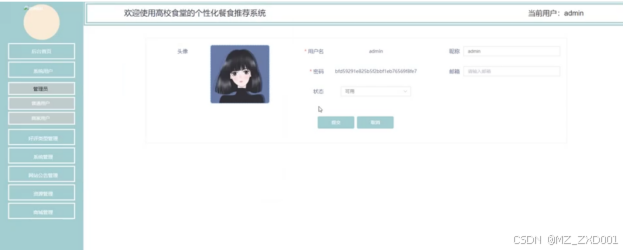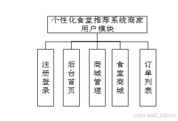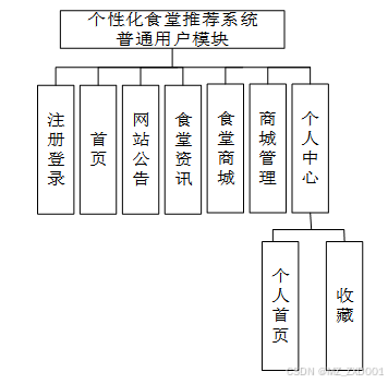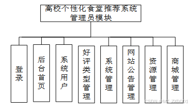 高校个性化餐食推荐整体分为管理员和普通用户两个模块,功能如下: