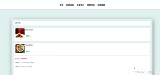 - 食堂商城:用户可以在食堂商城查看各种食堂列表信息、根据食堂介绍及自己喜好购买想要的商品。