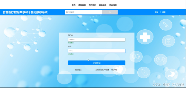 我们基于SpringBoot框架、Java语言和MySQL数据库,设计并实现了智慧医疗数据共享和个性化推荐系统。该系统不仅为患者带来便利,还有助于提高医疗行业的管理效率,降低医疗成本,为医疗行业的发展提供新的契机。通过数据共享和个性化推荐,该系统可以为患者提供药方信息、医生信息、健康填写功能,同时可以查看医疗新闻资讯和提供反馈信息,满足他们的特定需求。