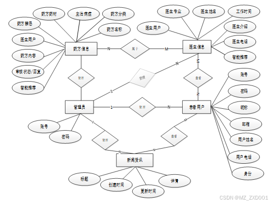 (5)药方信息管理:管理员可以管理药方信息,包括列表查看、添加新药方、查看详细信息、查看用户评论、进行查询和删除操作。管理员可以通过药方名称、分类、主治病症和审核状态进行搜索。管理员需要审核医生上传的药方信息后才能在前台展示。