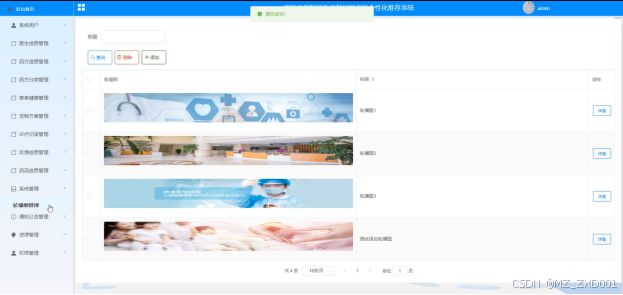 管理员可以查看轮播图列表中的某一轮播图详情,可以对系统轮播图进行查询、添加和删除管理。其界面如下图4-18所示。