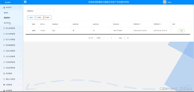 (3)系统用户管理:管理员可以管理系统用户,包括管理员、患者用户和医生用户,这些用户需要由管理员添加。