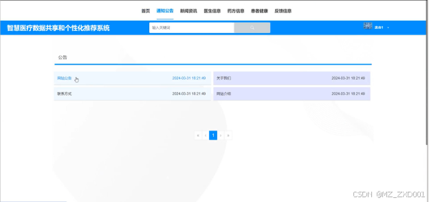 (3)通知公告:前台患者用户可以查看最新的通知公告,获取医疗机构发布的重要信息和公告。