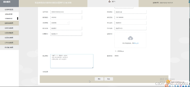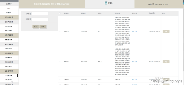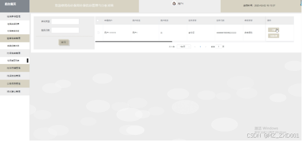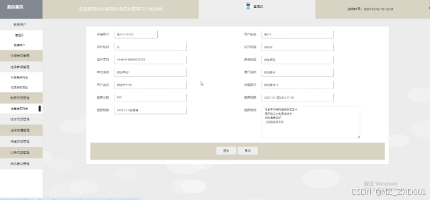 设计和实现社保信息管理和分析系统可以提高社保管理的效率和准确性,减少了传统手工操作带来的错误和遗漏。根据该系统的需求分析可以划分为管理员和普通用户两大模块,实现后台首页、系统用户(管理员、普通用户)、社保类型管理、社保参保管理、缴费信息管理、社保信息管理、社保待遇管理、待遇发放管理、公告信息管理、投诉建议管理等功能;管理员可以对系统进行维护和管理,普通用户可以方便地查询和管理自己的社保信息,并进行缴费操作,提高了公民参与社保管理的积极性;并且能够对社保数据进行有效管理和分析,为制定科学合理的社保政策提供支持。