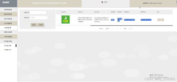 可对公告信息进行管理,查看详情信息,进行增改删查操作。界面如下图所示。