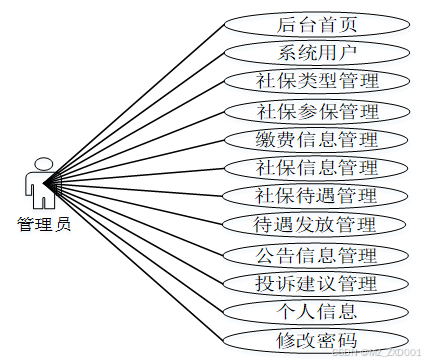 通过3.3功能的分析,得出了本市社保局社保信息管理与分析系统的用例图: