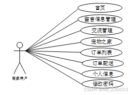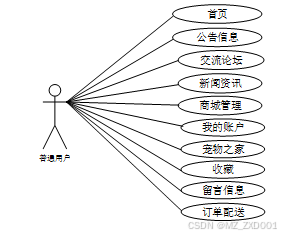 通过2.3功能的分析,得出了本宠物之家管理系统的用例图: