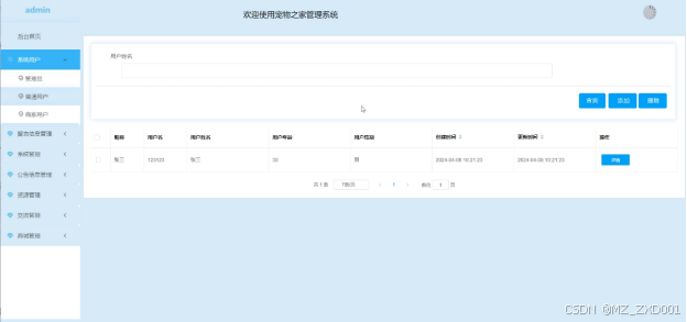- 用户注册登录:用户注册为用户并登录宠物之家管理系统;用户对个人信息的增删改查,比如个人资料,密码修改。