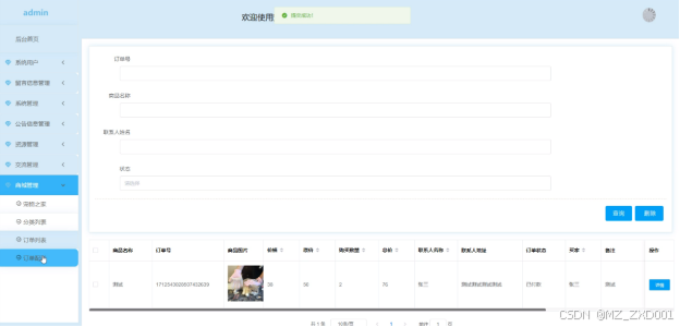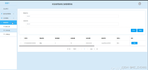 (5)商城管理:点击“商城管理”这个菜单,可以查看到宠物之家、分类列表、订单列表、订单配送等功能,进行查询,添加、删除等操作。