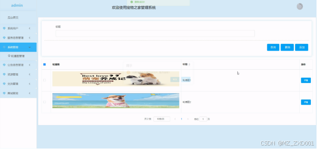 管理员可以对轮播图进行提交,还可以进行查询、重置、删除、添加等操作。界面如下图4-8所示。