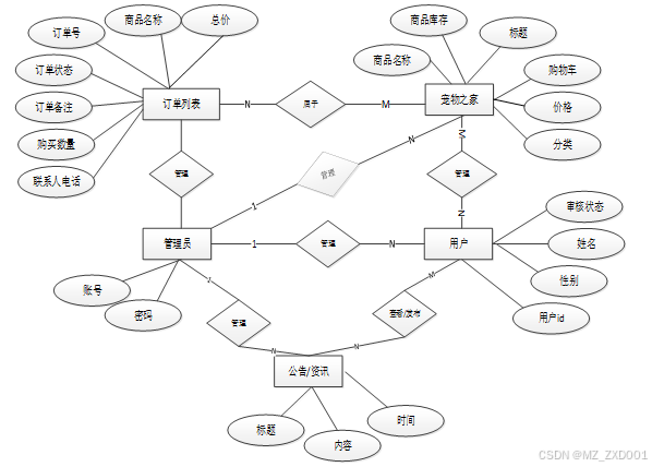 下面是整个宠物之家管理系统中主要的数据库表总E-R实体关系图。