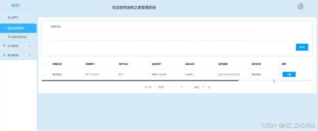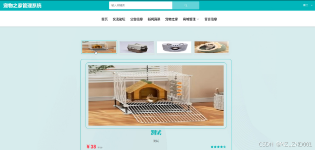 (4)宠物之家:点击“宠物之家”这个菜单,可以查看到系统中所有添加的宠物之家,支持通过关键词进行查询,如果想要了解某一宠物之家的详细信息,点击后面的“详情”会进入详情查看界面,可以对宠物之家进行添加购买、收藏、评论等操作;