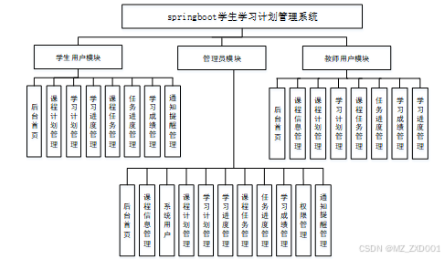 springboot学生学习计划管理系统针对用户需求进行划分,主要分为学生用户、教师用户和管理员三个模板,提供了丰富的功能,具体功能分析如下: