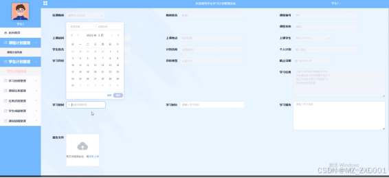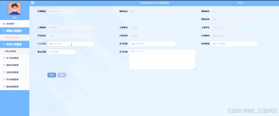 学生能够制定个人学习计划,包括学习目标、时间安排、复习计划等,以提高学习效率,界面如下图所示。