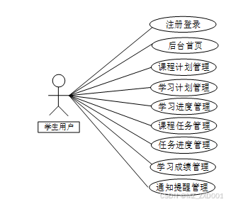 学生学习计划管理系统中学生用户角色用例图如图2.1所示: