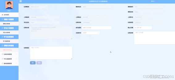 - 课程任务管理:学生可以查看每门课程的任务要求和作业安排,了解课程任务和学习要求。