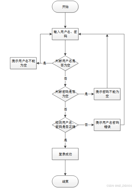 所有用户登录系统需要前端校验用户名、密码是否正确以及是否为空,具体流程图如图所示: