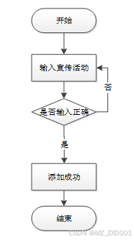 添加宣传活动信息,输入活动名称、上传图片、活动时间、活动地点、活动内容等信息,并校验输入是否正确,宣传活动信息添加流程图,如图所示: