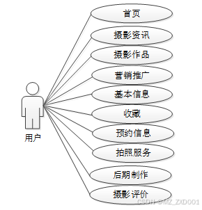 系统用例分析是对系统中各个功能模块的用户需求和行为进行分析,以识别和描述不同的用户用例。通过系统用例分析,可以深入了解用户在平台上的操作流程和交互方式,为系统设计和开发提供指导,并确保平台能够满足用户的需求和期望。用户摄影甄选栉比系统中用户角色用例图如图2.1所示: