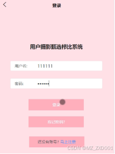 用户注册功能包括用户填写注册信息,如用户名、密码、联系方式等,系统验证信息合法性,生成用户账号,发送确认邮件或短信,用户点击确认链接或验证码完成注册。注册成功后,用户可登录系统,享受系统提供的摄影作品展示、预约服务等功能。界面展示如下图4.1所示。