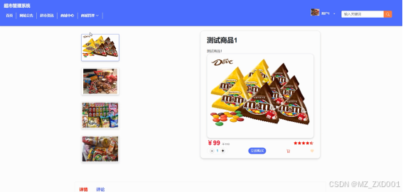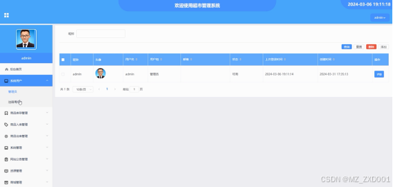 - 后台首页:管理员可以查看超市销售金额、商品销售数量等统计信息,了解超市运营情况,并根据数据进行决策和优化。