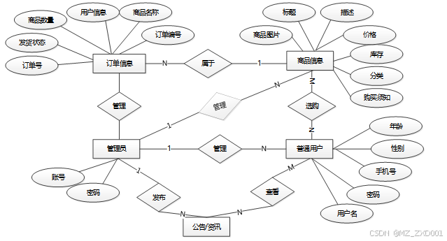 下面是整个超市管理系统中主要的数据库表总E-R实体关系图。
