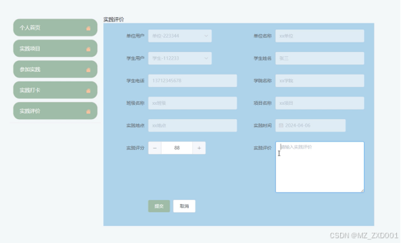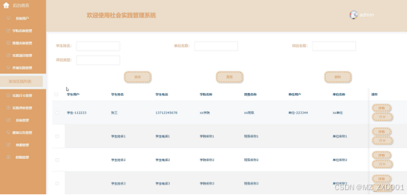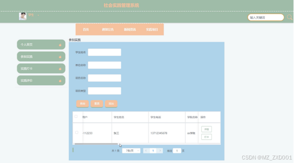 Key words: Social practice management system; SpringBoot framework; Vue; Java language; MySQL data