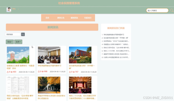关键词:社会实践管理系统;SpringBoot框架;vue;Java语言;Mysql数据库