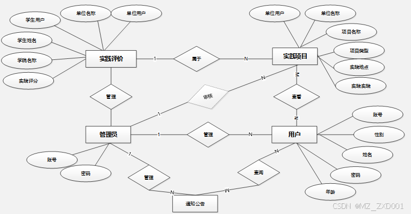 (1) 社会实践管理系统整体E-R图,如图4-5所示:
