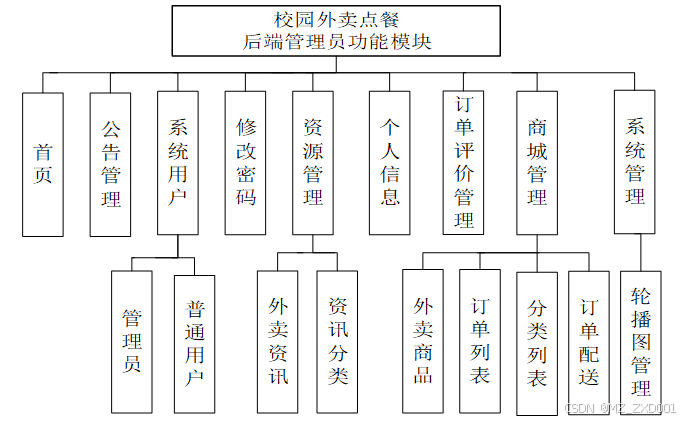 图4-2校园外卖点餐后端功能结构图