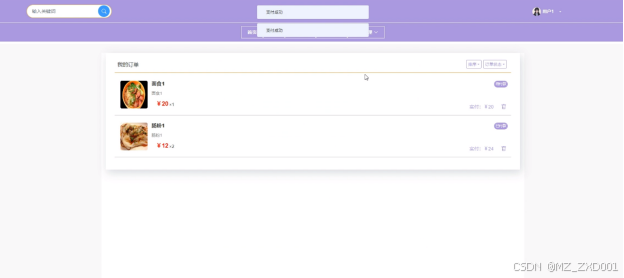 (4)订单列表:在校园外卖点餐中,用户和管理员都能够管理订单信息,可以对订单信息进行查看、删除。如下图3-5所示。