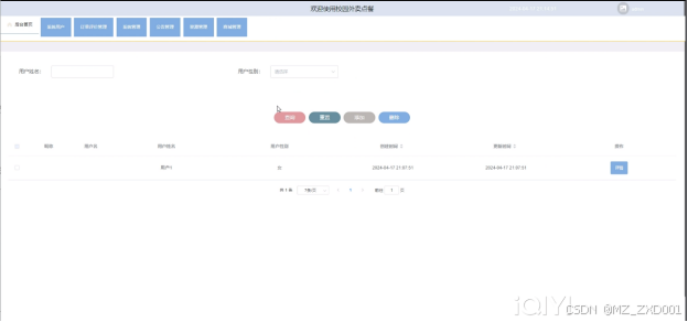 校园外卖点餐中的管理人员是可以对前台注册的用户进行管理。普通用户界面如下图6-9所示。