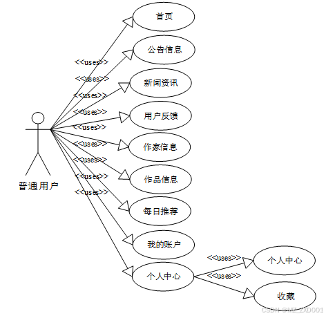 作家全知百科系统中普通用户角色用例图如图2.1所示: