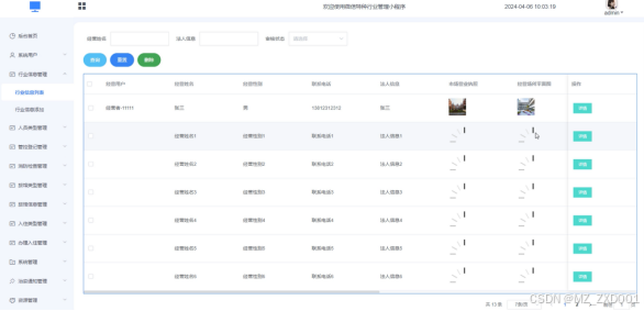 通过行业信息管理页面,可以获取行业的信息,包括但不限于经营姓名、经营性别、联系电话、法人信息、市场营业执照等,而且还可以根据自身的需求,进行查询、重置、删除等操作,如图5-11所示。