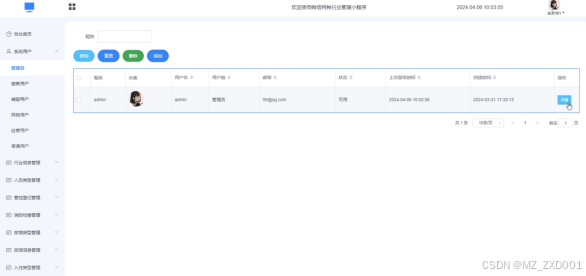 通过系统用户页面,可以查看账号、密码、昵称、邮箱、身份、姓名、电话、性别等信息,并且可以根据您的需求进行查询、重置、删除、添加等操作,如图5-10所示。