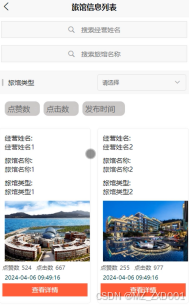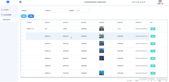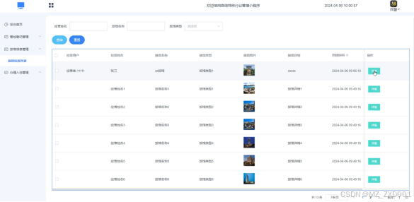 通过旅馆信息管理页面,可以查看经营用户、经营姓名、旅馆名称、旅馆图片、旅馆详情等信息,并且可以根据您的需求进行相应的操作,详见图5-15。