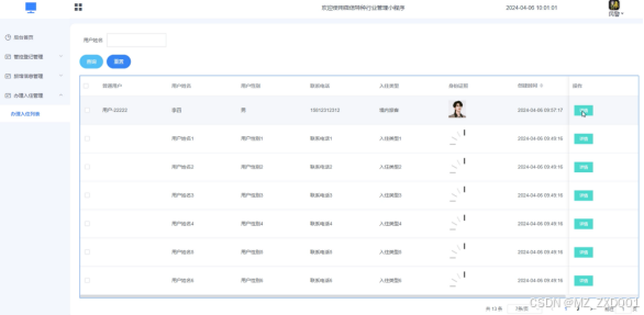通过办理入住管理页面,可以查看普通用户、用户姓名、联系电话、入住类型、身份证照等信息,并且可以根据您的需求进行相应的操作,详见图5-13。