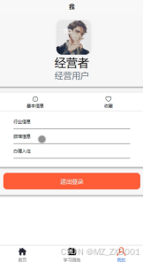 通过访问我的主页,可以能够获取自己的基本信息、收藏、行业信息、旅馆信息、办理入住等信息,详见图5-6、5-7。