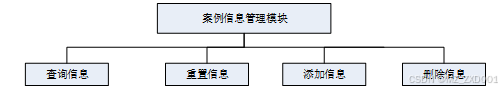 案例信息管理模块是本系统中的重要功能之一。该模块的设计旨在提供对案例信息的发布、编辑、删除和查看等管理功能,以便及时、准确地向系统用户发布相关的案例信息。其模块功能结构图如下3-4所示:
